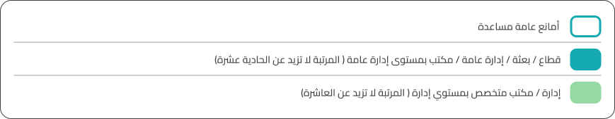 عموم للقطاعات التالية: مكتب الأمين العام، التنسيق والمتابعة، التخطيط الاستراتيجي والتميز المؤسسي، الإعلام والتواصل الاستراتيجي، الشؤون المالية والإدارية، شؤون المعلومات، المراسم، ويتم تعيينهم من قبل الأمين العام.