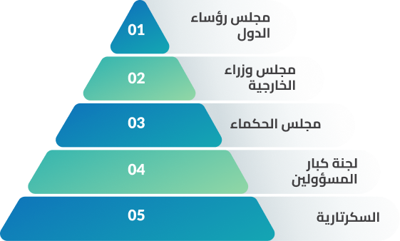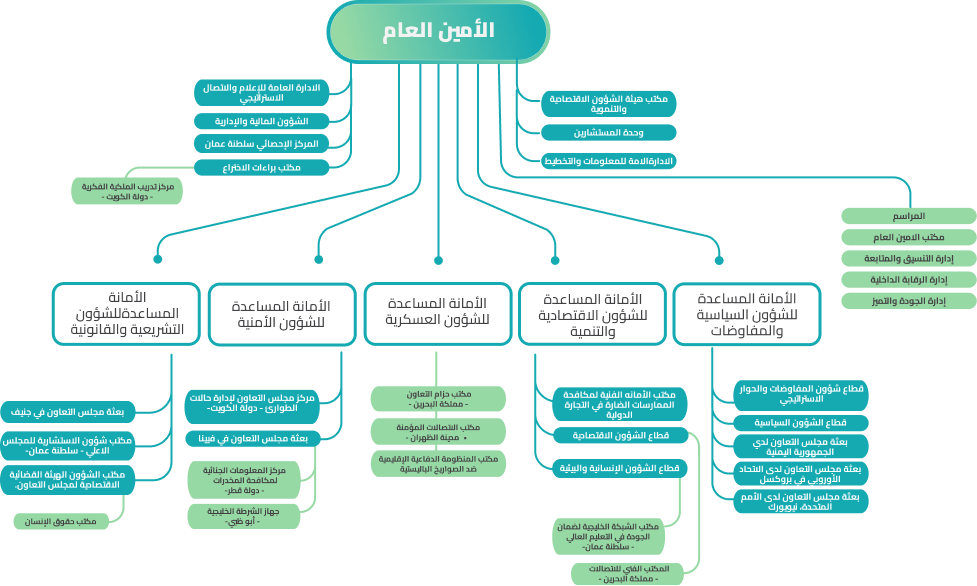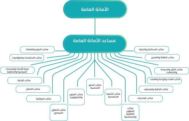 وحسب الهيكل التنظيمي الجديد للأمانة العامة – الذي اعتمده المجلس الوزاري في 25 نوفمبر 2014م- فإن الجهاز الإداري للأمانة العامة يتألف من الآتي: