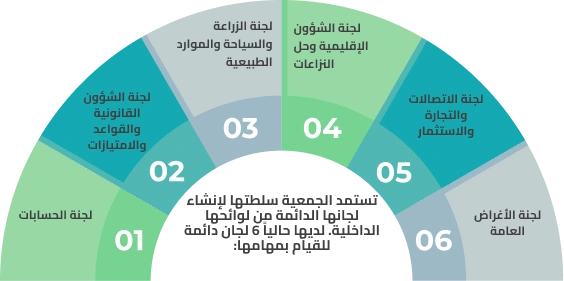 ويتألف الهيكل التنظيمي من الرئيس ونائب الرئيس الأول، ولكل كتلة نائب رئيس ومقعد عضو لتمثيل المنطقة.